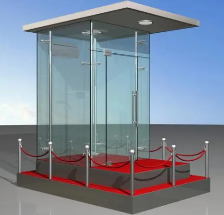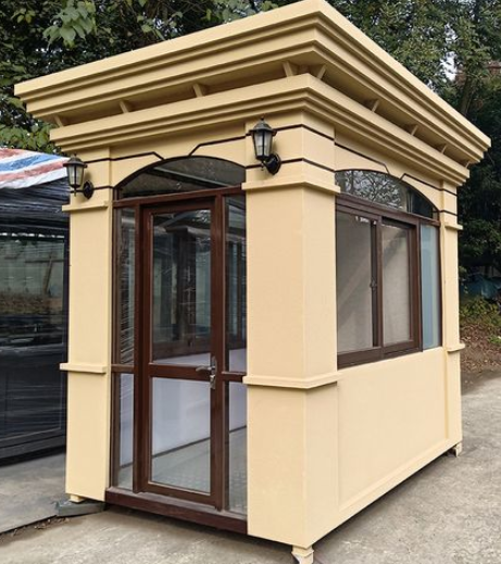 展廳門(mén)口等用來(lái)防護(hù)治安人員不被風(fēng)吹雨淋臨時(shí)活動(dòng)房。