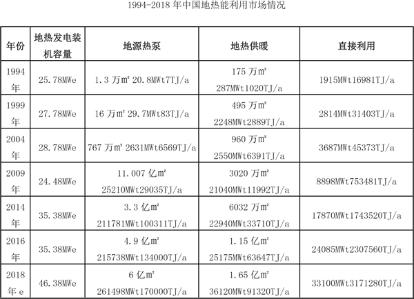 截止2018年年底,中國地區地熱發電累計裝機約46.38MWe。