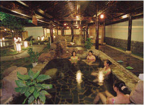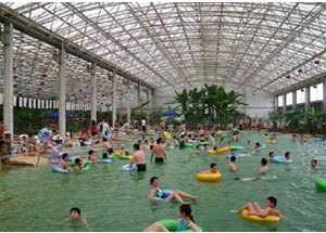 溫泉陽光浴場展示出亮麗的南國風情,分布大型泳池和品類各異的水療、魚療、花藥浴、泥巴浴,不僅具有神奇的理療保健作用,還兼備排毒養顏、美白肌膚、調理身心等多重功效,享有蘇北熱海、澤國仙境、華東首席溫泉度假區之美譽。
