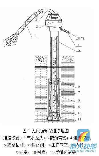 (1) 潛孔錘及雙壁鉆桿的中空斷面作為反循環通道,因斷面積小且直徑不變,在有限空 壓機供風量條件下,可增大上返風速,提高排渣能力,避免孔底重復破碎,從而提高鉆進效率及增大孔深和孔徑;同時也不用經常提拉鉆具吹孔,保持了鉆進的連續性;