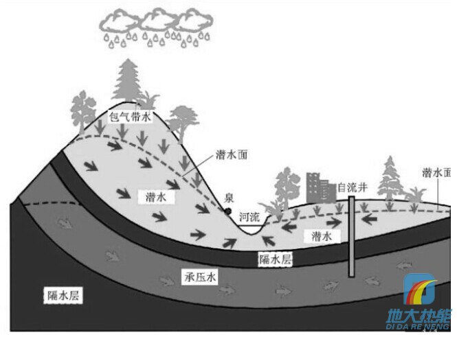 包氣帶水 是指埋藏于包氣帶中的地下水,包氣帶指巖石空隙未被地下水充滿的地帶,多為吸著水或薄膜水,而重力水較少。如果下滲水多時,可出現(xiàn)較多的重力水。 運動:主要作垂直方向上的運動,如重力水常由上向下運動、毛細水由下向上運動。 主要包括:土壤水、上層滯水、沼澤水、沙漠及濱海沙丘中的水等。一般水量不太,易受污染,故不易作為工農(nóng)業(yè)供水水源,但對于植物生長具有重要意義。 潛水 地面以下第一個穩(wěn)定隔水層以上具有自由水面的地下水 承壓水 充滿兩個隔水層之間的承受靜水壓力的地下水。