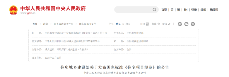 近日,住房城鄉(xiāng)建設(shè)部批準(zhǔn)《住宅項(xiàng)目規(guī)范》為國(guó)家標(biāo)準(zhǔn),編號(hào)為GB 55038-2025,自2025年5月1日起實(shí)施。住房城鄉(xiāng)建設(shè)部發(fā)布的公告明確,本規(guī)范為強(qiáng)制性工程建設(shè)規(guī)范,全部條文必須嚴(yán)格執(zhí)行。現(xiàn)行工程建設(shè)標(biāo)準(zhǔn)中有關(guān)規(guī)定與本規(guī)范不一致的,以本規(guī)范的規(guī)定為準(zhǔn)。新規(guī)范以住宅項(xiàng)目整體為對(duì)象,以安全、舒適、綠色、智慧為目標(biāo),在規(guī)模、布局、功能、性能和關(guān)鍵技術(shù)措施等方面,對(duì)住宅項(xiàng)目的建設(shè)、使用和