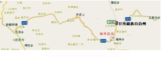 ![]() | 四川康定榆林溫泉風景榆林溫泉在地下10米以內,水溫高達91℃,流出地面的溫度可達到50℃,流量達5L/s。水溫高,壓力大,而且含有多種元素和化合物。 |